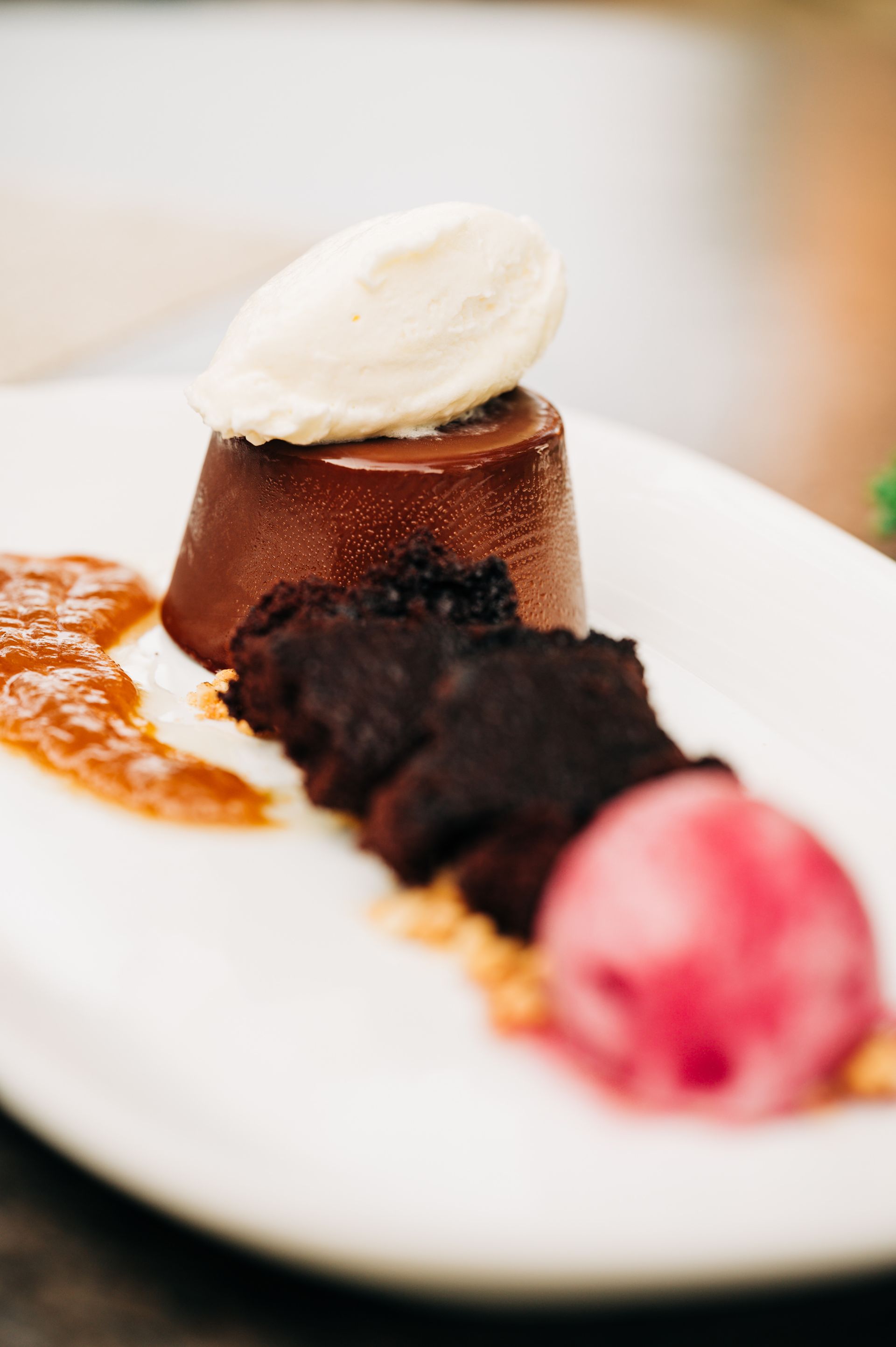 espresso chocolate cake layered with chocolate marsala zabaglione